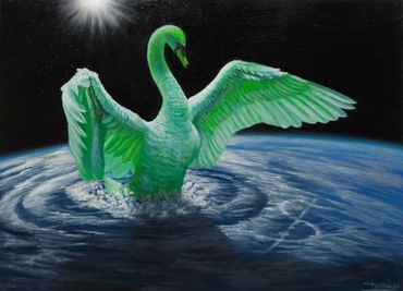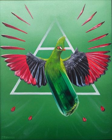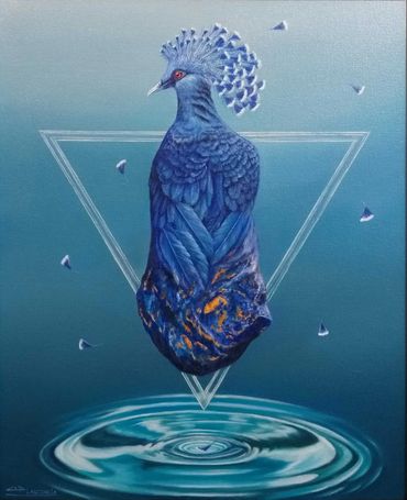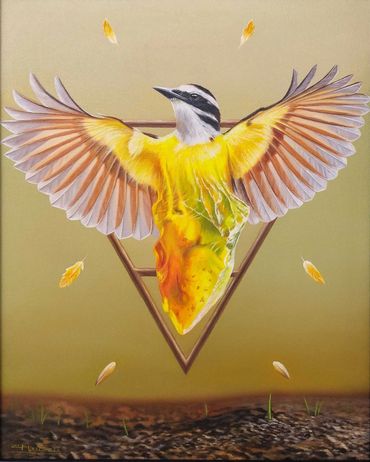 Las obras de esta línea pictórica habitan el territorio del imaginario: un universo que se despliega entre lo fantástico y lo surrealista. En ellas me concedo la libertad de inventar seres y personajes que no responden a las reglas del mundo tangible, sino a los lenguajes de la metáfora, el símbolo y la imaginación.
